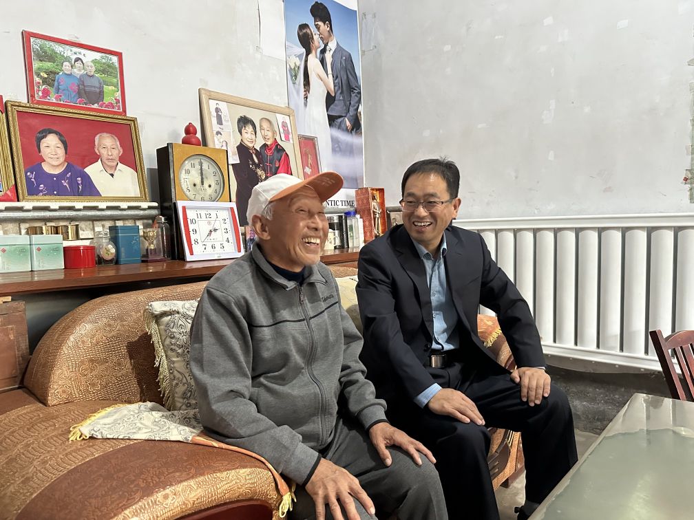 隨后,張總來到了83歲老人趙增信與王愛蘭家中。“昨天晚上,我們老兩口還在電視上看到你了呢?!币贿M(jìn)門,兩位老人就跟張總這樣講到。昨晚,張總錄制的《榜樣》欄目,在濟(jì)南電視臺時政新聞欄目播出。老人趙增信也曾是一名“工程兵”,談及欄目中提到的張總“當(dāng)過兵”,兩人因著這共同話題,暢聊起那段難以忘懷的軍旅時光,相談甚歡。張總親切的話語和叮囑也讓兩位老人笑聲不斷,連聲表達(dá)對公司、張總的感謝。他們說,每年張總都不忘他們,總帶著東西來看望他們,作為員工的家屬深感自豪,并祝愿公司越來越好。