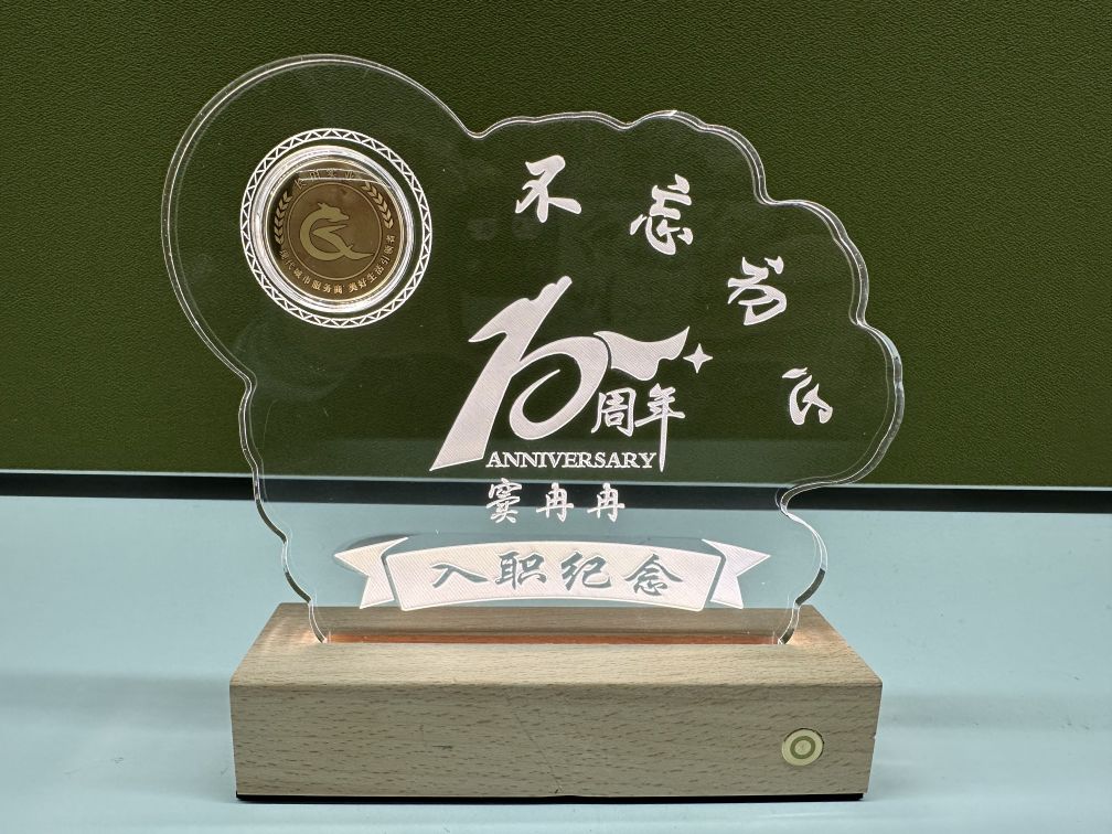 本次“十年耕拓獎”的紀念獎杯是公司精心選取的專屬定制獎杯,包含10周年標志、受表彰個人姓名以及一枚純金打造的紀念獎?wù)?,俗話說“情比金堅”,這是來自公司最真摯的情誼,代表公司對他們十年付出的感謝與美好祝福!