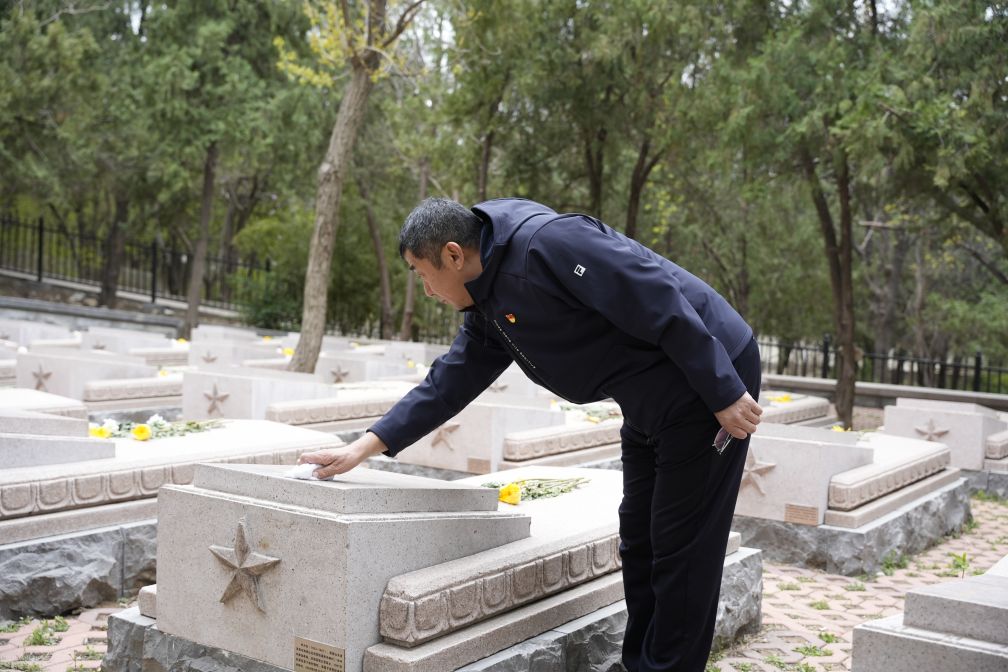 翠柏青松伴英烈,清明祭掃寄哀思。在革命烈士墓區(qū),全體人員懷著沉重的心情和崇高的敬意,俯身于烈士墓碑前,仔細(xì)地擦洗著每一座烈士的墓碑,并對墓區(qū)周邊環(huán)境進(jìn)行衛(wèi)生清理,每一塊烈士墓碑都被擦拭得干干凈凈。