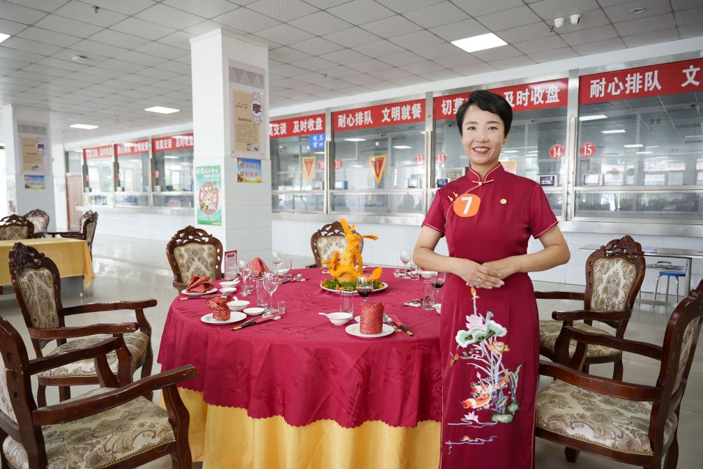 在餐廳服務(wù)員的比賽中,長(zhǎng)田餐飲團(tuán)隊(duì)所呈現(xiàn)的中餐宴會(huì)擺臺(tái)技藝卓越,創(chuàng)意層出不窮。其精心設(shè)計(jì)的龍鳳呈祥宴、聞韶養(yǎng)生宴、五谷豐登宴、福如東海宴、泉城人家宴、金榜題名宴等主題,借助桌布、餐具與臺(tái)面裝飾的巧妙搭配,生動(dòng)地呈現(xiàn)在每一張餐桌上。選手們優(yōu)雅的姿態(tài)、專業(yè)的操作手法和精美的臺(tái)面設(shè)計(jì),不僅為賽事帶來了一場(chǎng)視覺藝術(shù)的盛宴,更深刻地展示了中餐文化的博大精深與獨(dú)特魅力。