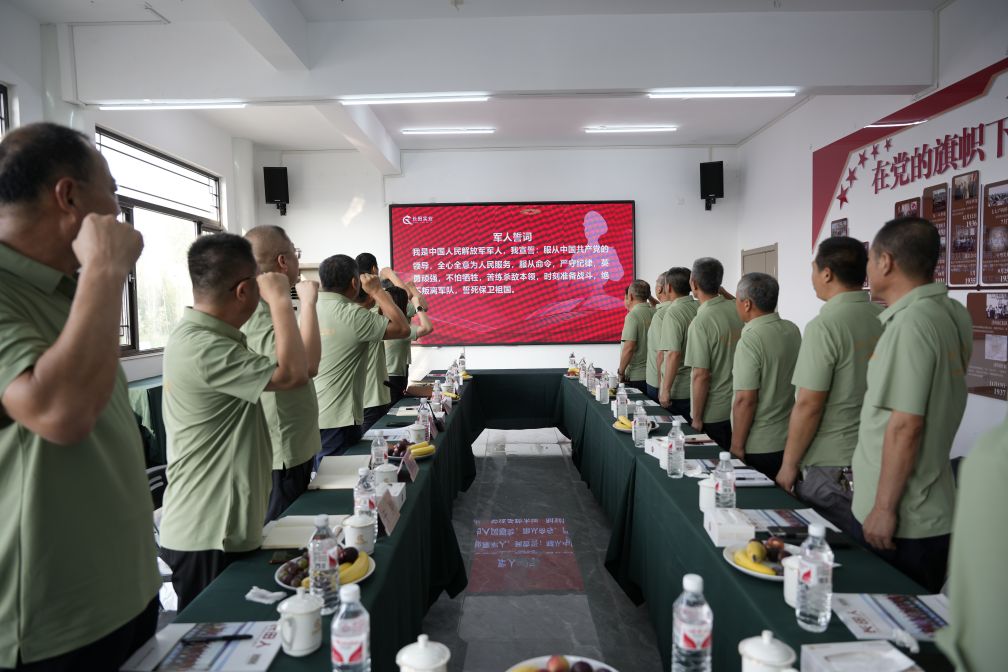 97年櫛風(fēng)沐雨,春華秋實(shí);97年耕耘不輟,薪火相傳。一次儀式教育,就是一次靈魂洗禮。活動(dòng)現(xiàn)場(chǎng),在領(lǐng)誓員的帶領(lǐng)下,全體退役軍人高舉右拳,再次莊嚴(yán)宣誓。“我是中國(guó)人民解放軍軍人,我宣誓:服從中國(guó)共產(chǎn)黨的領(lǐng)導(dǎo),全心全意為人民服務(wù),服從命令,忠于職守,嚴(yán)守紀(jì)律,保守秘密,英勇頑強(qiáng)、不怕?tīng)奚弊肿昼H鏘有力,句句擲地有聲。肅穆莊嚴(yán)的誓詞,彰顯著全體退役軍人不忘初心、牢記使命、勇敢堅(jiān)毅的軍人本色。時(shí)刻提醒著退役軍人們將軍人誓詞內(nèi)化于心、外化于行,時(shí)刻鞭策自己,進(jìn)一步強(qiáng)化軍人身份意識(shí),增強(qiáng)團(tuán)隊(duì)歸屬感。