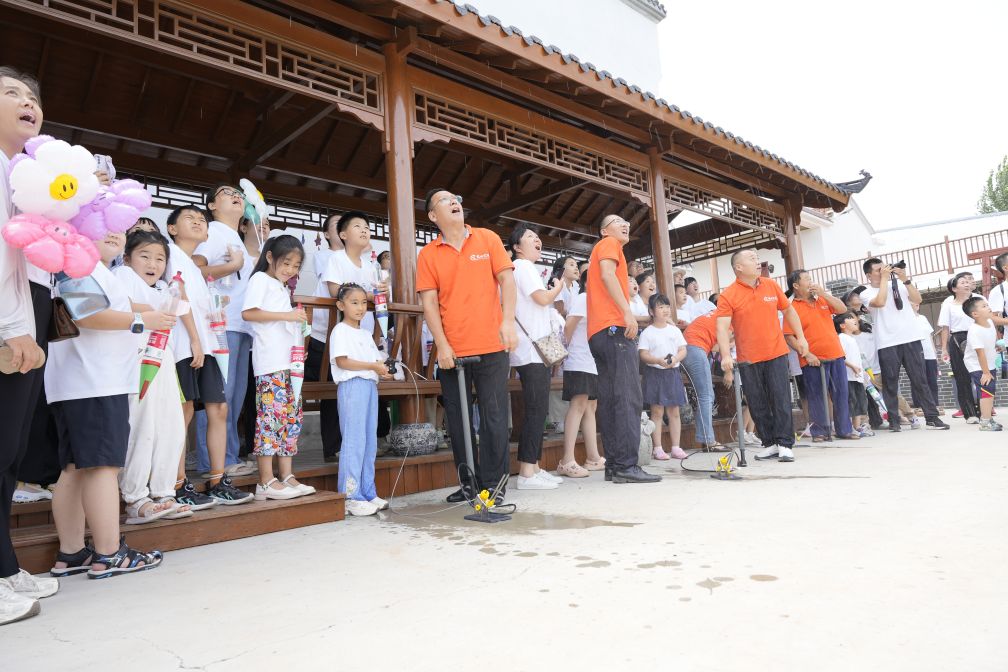 隨后,孩子們都化身為“小小航天工程師”,在研學(xué)老師的指導(dǎo)下,孩子們不斷改進調(diào)整,伴隨著“嘭”的一聲,“水火箭”一飛沖天,成功發(fā)射。一陣陣贊嘆聲、驚呼聲伴隨著每個水火箭的升空發(fā)射,孩子們與家長們在現(xiàn)場都不由自主地拍手鼓掌,為自己的發(fā)射成功感到自豪。