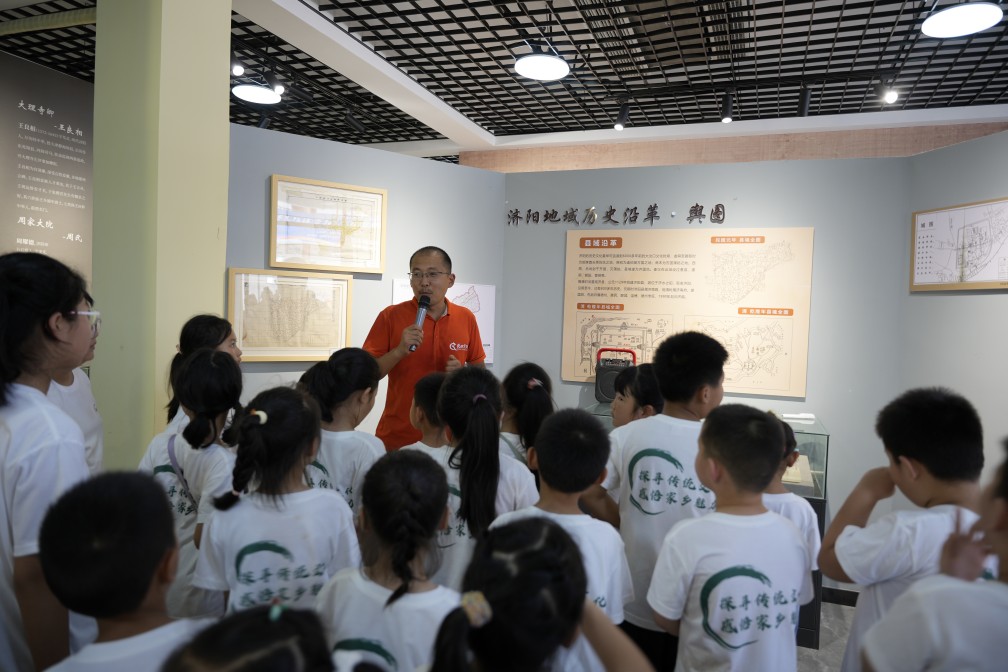 與文物對話,駐足歷史痕跡,感受文化的無窮魅力,增強孩子們的文化自信。孩子們在講解員的引領(lǐng)下參觀基地內(nèi)濟水春秋博物館,館內(nèi)陳列著大量的珍貴古籍文獻,涵蓋古代歷法、古代文學(xué)、古代農(nóng)業(yè)等各個門類,各類歷史文獻描繪了濟陽厚重的歷史進程,孩子們在參觀中學(xué)習(xí)家鄉(xiāng)的歷史文化,了解濟陽故事,增強對家鄉(xiāng)的了解,提升文化自信。