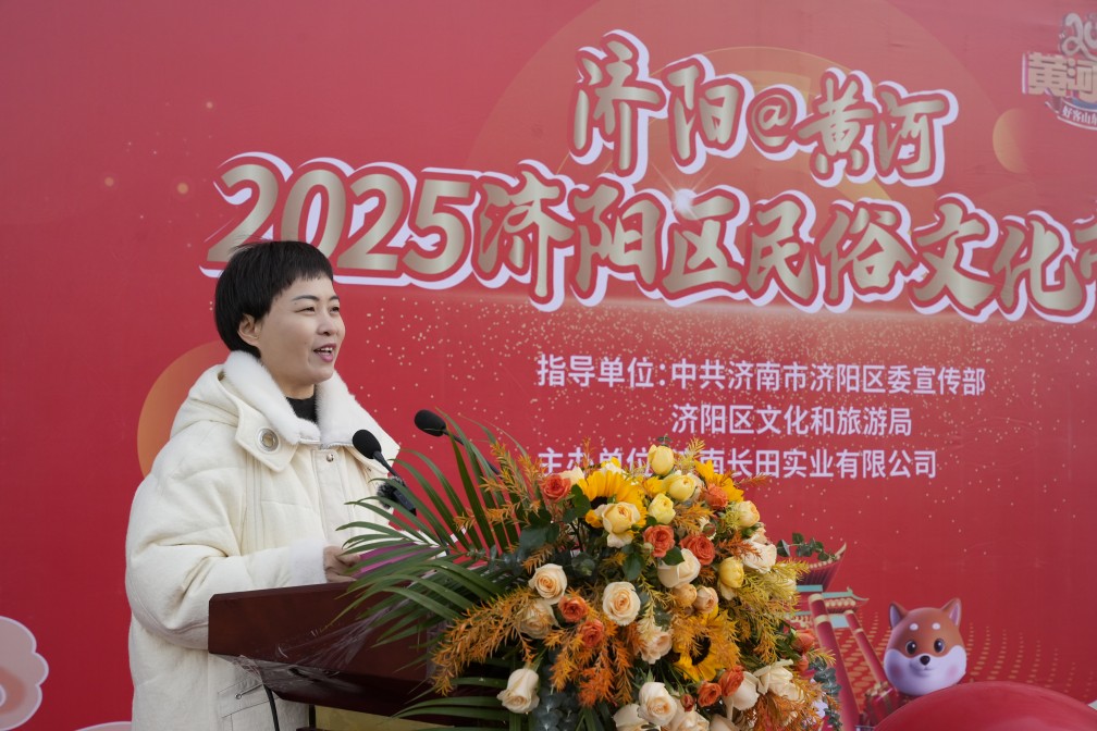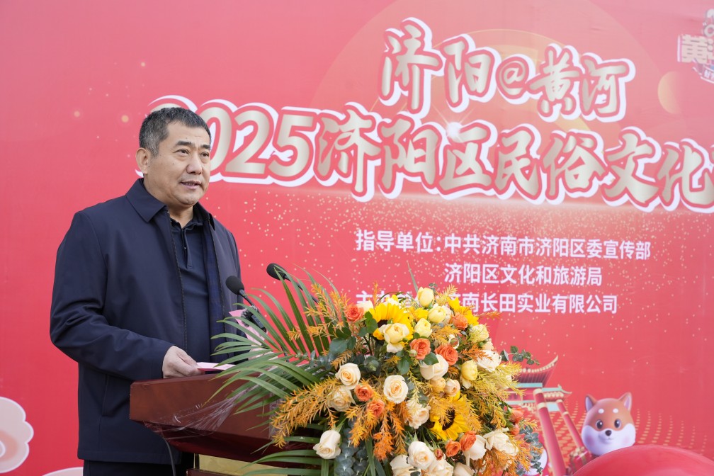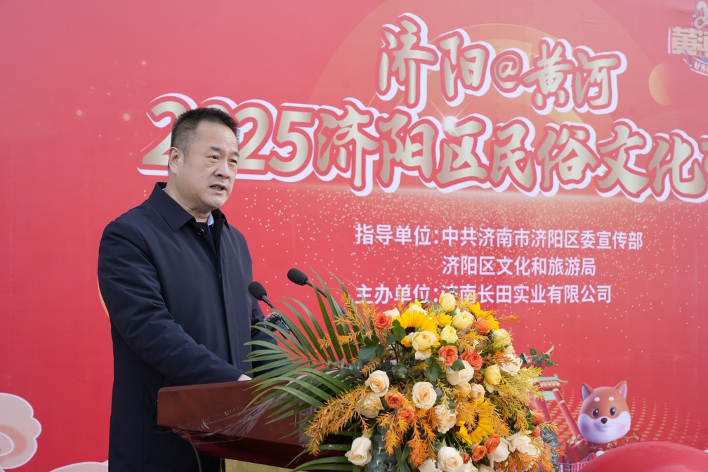 張總發(fā)表講話,他講到,民俗文化是一個民族的精神脊梁,是我們共同的根與魂。在濟陽這片古老而又充滿魅力的土地上,孕育了豐富多彩的民俗文化。巧奪天工的濟陽黑陶、農(nóng)民畫、木作等傳統(tǒng)手工技藝,香氣撲鼻的垛石驢肉、小磨香油,喜慶吉祥的糖畫等,都彰顯著濟陽人民的智慧與創(chuàng)造力,承載著濟陽深厚的歷史底蘊與獨特的文化魅力。他希望,能夠通過本次民俗文化市集活動,為市民搭建一個深入了解、體驗濟陽民俗文化的平臺,讓更多人了解濟陽的文化底蘊,在這場接地氣的市集活動中感受別樣的年味氣氛,體驗到文化的滋養(yǎng)。