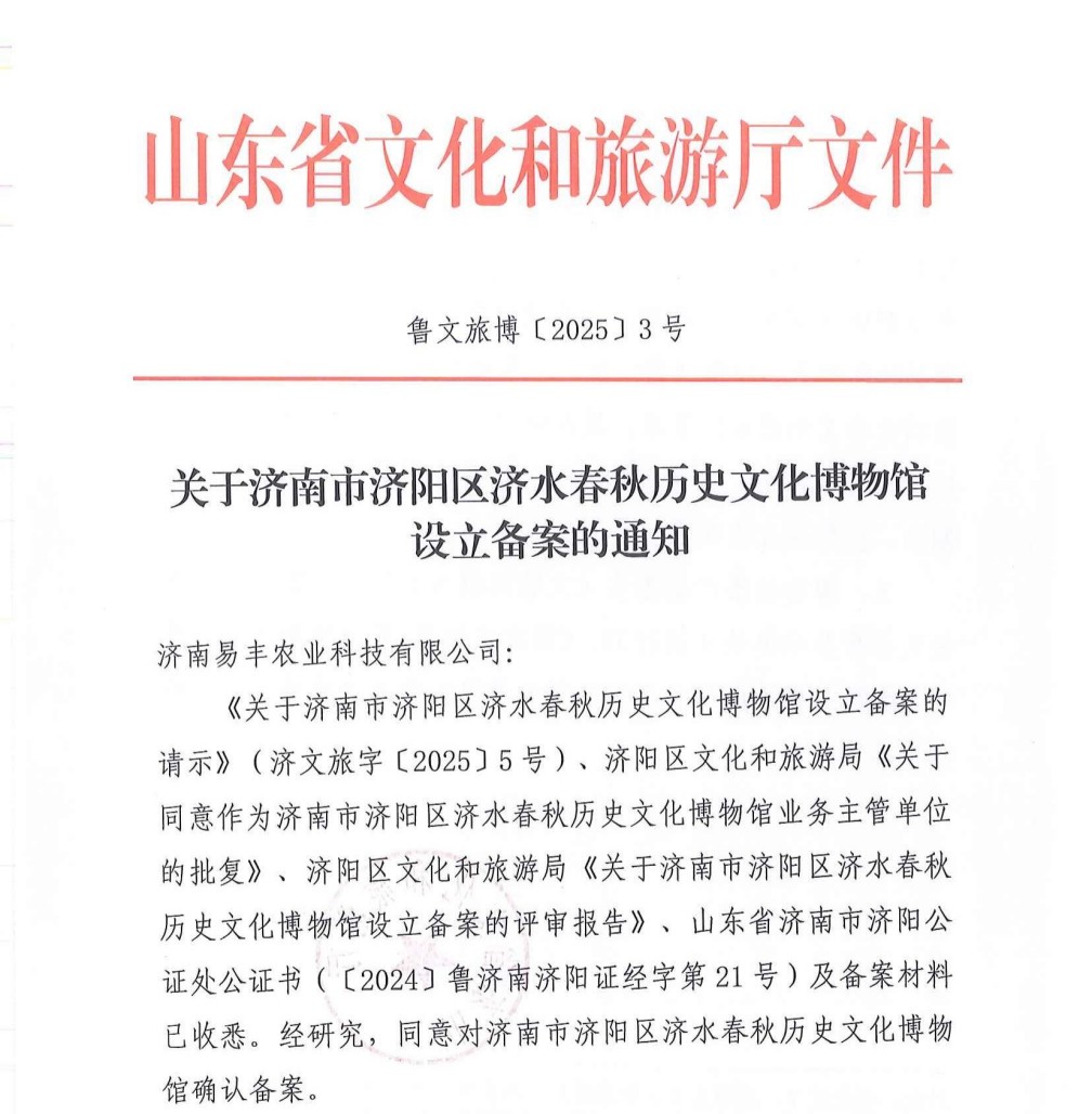 近日,長(zhǎng)田實(shí)踐教育基地濟(jì)水春秋歷史文化博物館順利通過山東省文化和旅游廳設(shè)立備案批復(fù),正式進(jìn)入非國(guó)有博物館序列,這是濟(jì)陽(yáng)區(qū)第3家備案成功的非國(guó)有博物館。