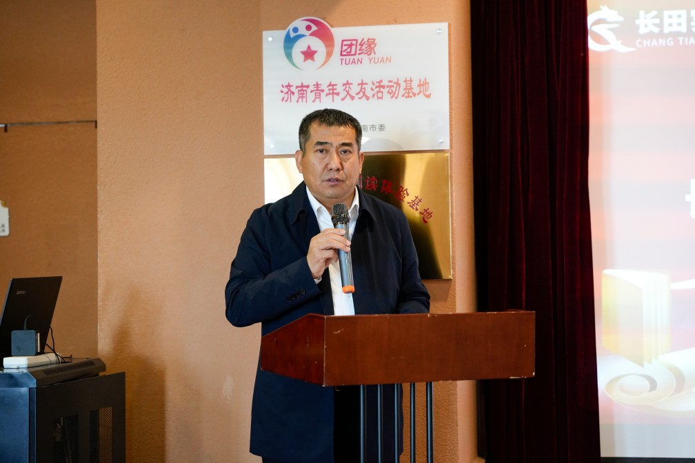 張總對各位領導、嘉賓的到來表示了熱烈的歡迎。他講到,長田書屋的誕生,源于我們對“全民閱讀”號召的響應、對“文化潤城”的樸素信仰。近年來,長田書屋通過持續(xù)舉辦讀書會、作家分享會、親子閱讀,參與“書香濟陽 閱見美好”全民閱讀月等各類文化活動,守護文化根脈、傳遞精神力量。長田實業(yè)也始終關注鄉(xiāng)村閱讀,去年在長田實踐教育基地設立了“長田董家鄉(xiāng)村書屋”,作為長田書屋的延伸。一方面將長田書屋豐富的圖書資源引入鄉(xiāng)村,另一方面將鄉(xiāng)村民俗等本土文化元素融入城區(qū)活動,推動城鄉(xiāng)閱讀陣地在資源共享中同頻共振。構建起“城市有陣地、鄉(xiāng)村有支點、全域有書香”的立體化閱讀網(wǎng)絡,讓文化的溫暖浸潤市民心田。長田書屋正式加入?yún)f(xié)會,成為濟陽區(qū)首家會員單位,是一份榮譽,更是一次“歸隊”。未來,長田書屋將緊跟協(xié)會步伐,讓優(yōu)質(zhì)閱讀資源如活水般,流向濟陽的每個角落,助力全民閱讀走實走遠。