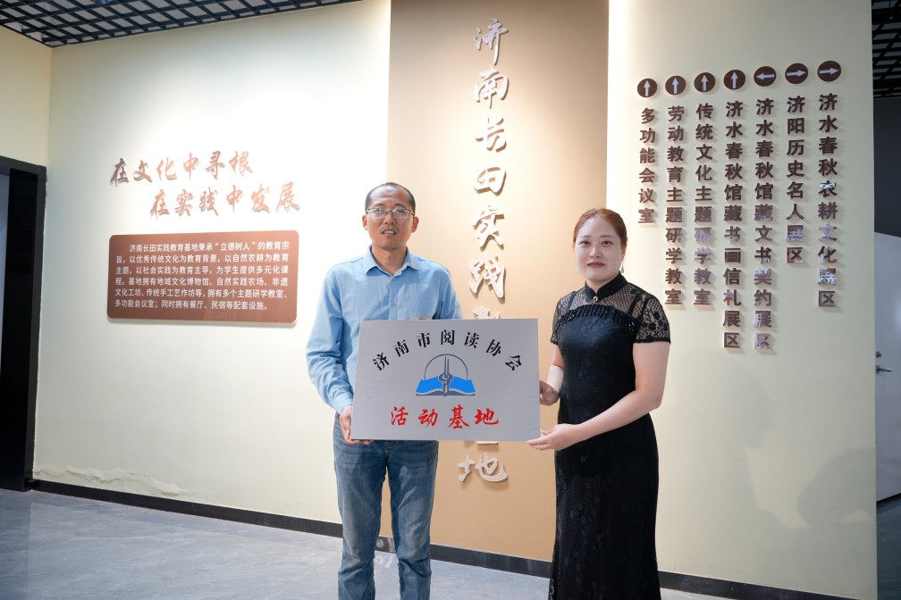 濟南市閱讀協(xié)會會長何麗亞為長田實踐教育基地授牌。長田實踐教育基地被授予“濟南市閱讀協(xié)會活動基地”的稱號,這不僅是對基地的肯定,更是對社會責任的踐行。下一步,長田實踐教育基地將繼續(xù)發(fā)揮閱讀協(xié)會活動基地的示范作用,不斷創(chuàng)新閱讀推廣活動,豐富文化內(nèi)涵,讓更多的孩子在這里找到知識的樂趣,培養(yǎng)閱讀的習慣。同時,基地也將加強與濟南市閱讀協(xié)會的合作,共同舉辦各類閱讀活動,搭建起孩子們與書籍之間的橋梁,引領他們走進書海,探索知識的奧秘。