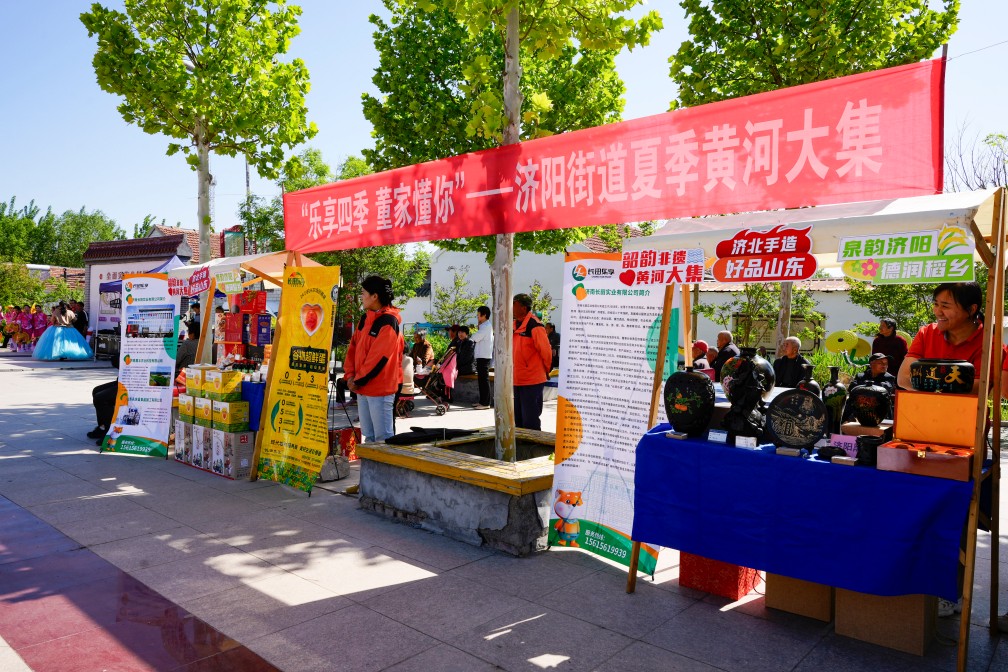 非遺展臺集中呈現(xiàn)黑陶制作、彩塑、烙畫、木版年畫等文化遺產(chǎn),領導們通過非遺傳承人的講述,感受技藝背后的歷史積淀,鼓勵非遺項目走出深閨、走向市場,融入現(xiàn)代生活,實現(xiàn)“雙創(chuàng)”發(fā)展。濟北手造展臺則匯聚黃河沿岸的民間手造精品,既有老粗布、鉤繡等傳統(tǒng)工藝,也有融入現(xiàn)代設計的黑陶文創(chuàng)產(chǎn)品,凸顯匠心與創(chuàng)新的結合。此外,還有以長田樂享超鮮蛋、烏棗、小磨香油、永慶昌熟食、肖家酥火燒等在地食材為亮點,展示了濟陽“北緯37度黃金農(nóng)業(yè)帶”的優(yōu)質(zhì)農(nóng)產(chǎn)品,成為鄉(xiāng)村振興的特色名片?;顒油ㄟ^場景化體驗與資源整合,進一步塑造了濟陽文旅品牌,推動區(qū)域高質(zhì)量發(fā)展。