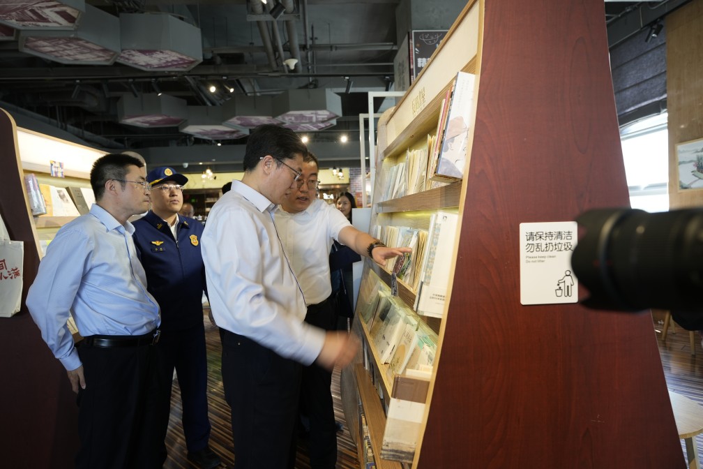 王區(qū)長對(duì)華百廣場進(jìn)行全面視察,先后前往必勝客、智航文具、長田書屋、半天妖烤魚、橫店影城等多家商戶。每到一處,他都細(xì)致詢問門店負(fù)責(zé)人假期客流趨勢(shì)、促銷活動(dòng)安排及服務(wù)保障措施,并親切與商戶代表交流,了解經(jīng)營狀況與實(shí)際需求。在橫店影城,他特別關(guān)注節(jié)日檔期影片排片及觀影安全預(yù)案;在長田書屋,他駐足良久,查看書屋的運(yùn)營情況,強(qiáng)調(diào)商業(yè)與文化的深度融合是提升城市品質(zhì)的關(guān)鍵所在。