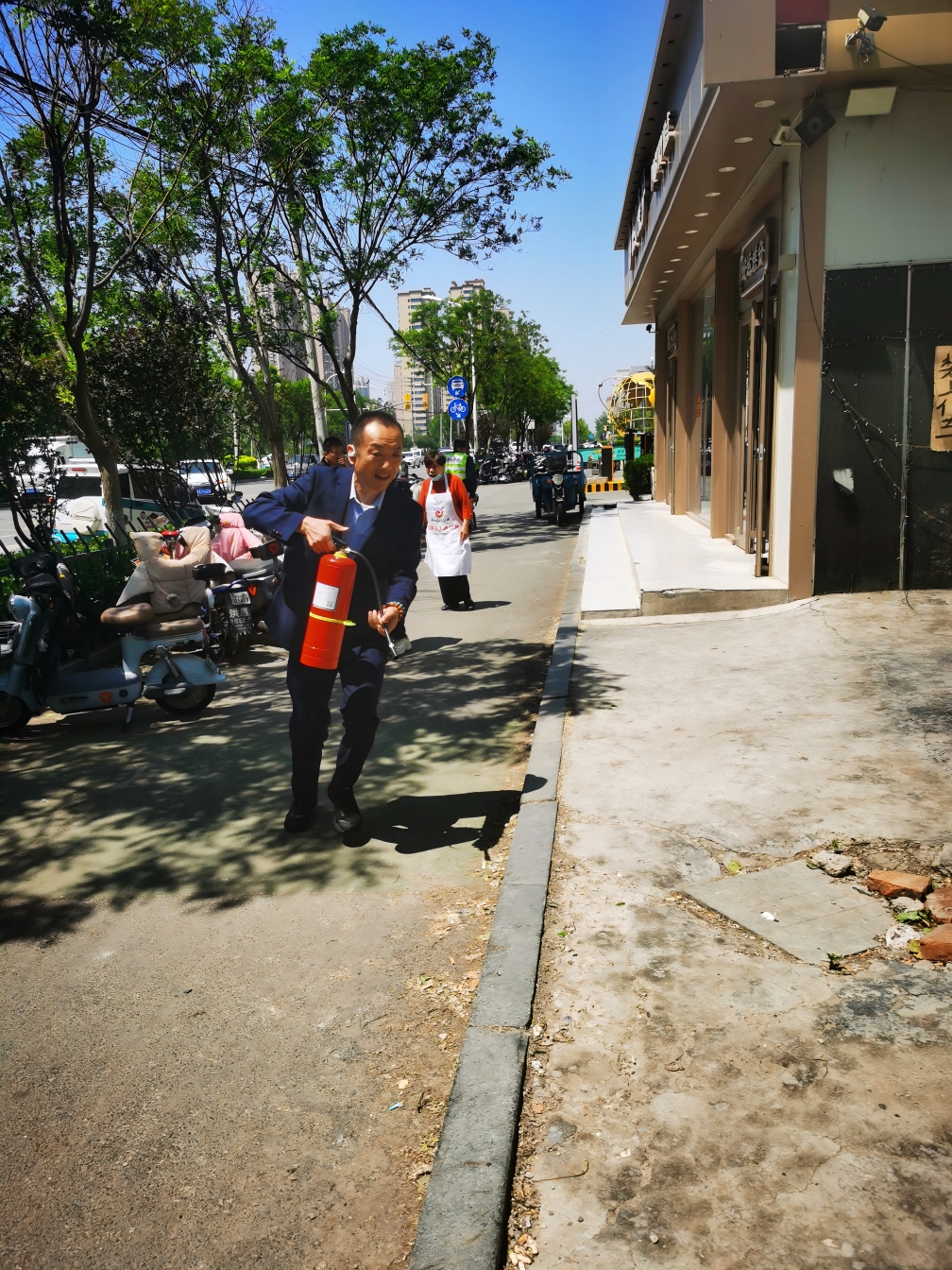 正如近期發(fā)生的一起火情,體現(xiàn)了長(zhǎng)田物業(yè)人的臨危不亂與高效協(xié)作。5月11日,華百?gòu)V場(chǎng)東側(cè)一燒烤店鋪突發(fā)火情!店主驚慌失措,向華百?gòu)V場(chǎng)執(zhí)勤安保人員求助,安保人員馬上通過對(duì)講機(jī)通報(bào)火情。安保主管高君接到指令后,臨危不亂,立即啟動(dòng)應(yīng)急預(yù)案,協(xié)調(diào)人員前往救火并報(bào)火警。到達(dá)現(xiàn)場(chǎng)后,發(fā)現(xiàn)涉事店鋪濃煙滾滾,且有火勢(shì)蔓延的趨勢(shì)。高君以及其他物業(yè)人員沒有絲毫退縮,第一時(shí)間全力投入到滅火作業(yè)中。從拔掉滅火器保險(xiǎn)銷,到對(duì)準(zhǔn)火焰根部噴射,整個(gè)動(dòng)作一氣呵成,規(guī)范嫻熟,干凈利落,精準(zhǔn)地控制了起火點(diǎn),抑制了火勢(shì)進(jìn)一步擴(kuò)大。與此同時(shí),其他幾名隊(duì)員迅速行動(dòng)起來,在現(xiàn)場(chǎng)周圍拉起警戒線,維持現(xiàn)場(chǎng)秩序,并通過大聲呼喊等方式通知附近的商戶遠(yuǎn)離現(xiàn)場(chǎng),提醒他們注意安全,避免發(fā)生意外。