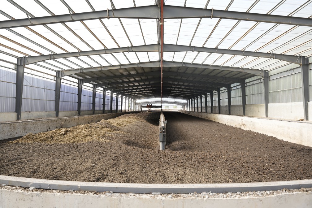 雞場(chǎng)負(fù)責(zé)人孫濤指著占地3500平米的發(fā)酵雞糞車間介紹:“你看我們這套搞法——發(fā)酵槽像炒菜一樣不停地翻堆。我們得把溫度、濕度和空氣(氧氣)都控制得剛剛好,再加上我們自己‘養(yǎng)’的一幫好使的菌種。這么一整,雞糞從臭烘烘的廢物變成能用的好肥料,時(shí)間一下子就從以前老辦法的倆月縮短到只要半個(gè)月!”他接著介紹:“發(fā)酵好的雞糞還得再搗碎、篩一篩、裝袋打包。這么處理完,原來讓人頭疼的雞糞,就真變成黑乎乎、肥力足的好有機(jī)肥了!”