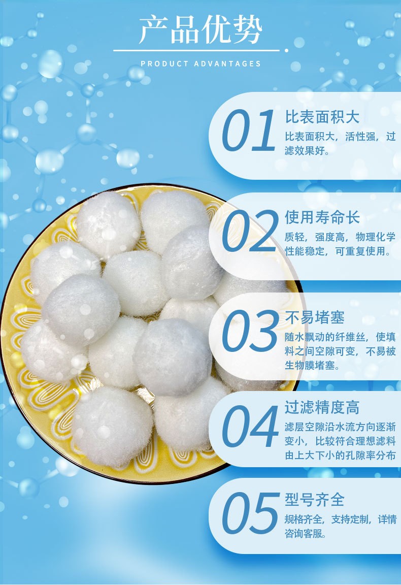 改性纖維球?yàn)V料廣泛用于:油田注水、化工溶液精濾、電子純水設(shè)備、工業(yè)給水預(yù)處理、空調(diào)循環(huán)冷卻水、游泳池循環(huán)水等領(lǐng)域。